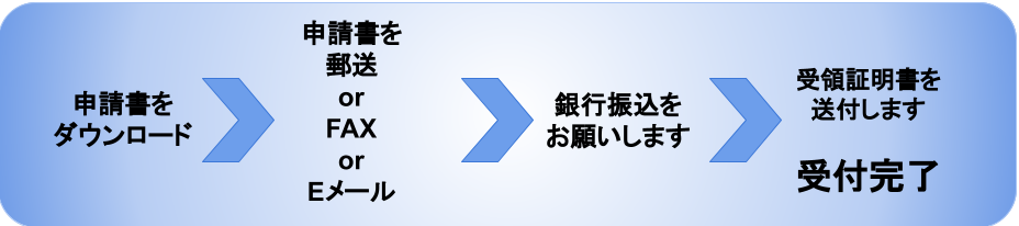 下記より申請書をダウンロードいただき、必要事項をご記入の上、郵送・ファックス・メールのいずれかにてお送りください。
